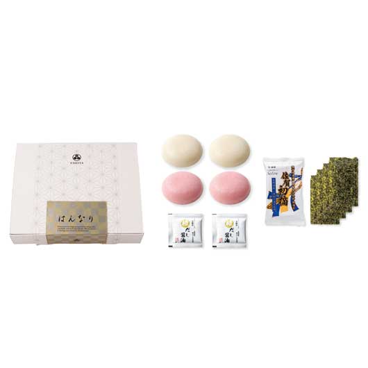 もち(紅・白)30g×各2、有明海産焼海苔4枚×1、極だし醤油20g×2