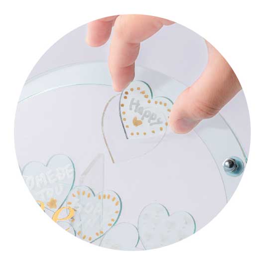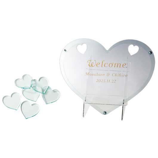 商品サイズ:360×285mmセット内容:本体フレーム×1個、ドロップパーツ(ハート)×50個+(予備5個)、専用スタンド×1個、手提げ袋×1枚 (※油性サインペンは付属されておりませんのでご用意ください)                                                             素材:アクリル