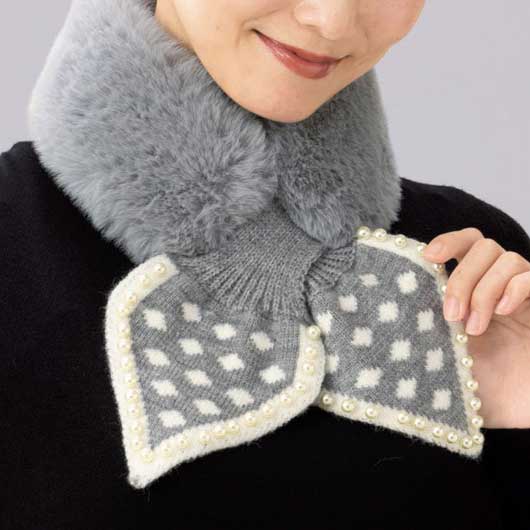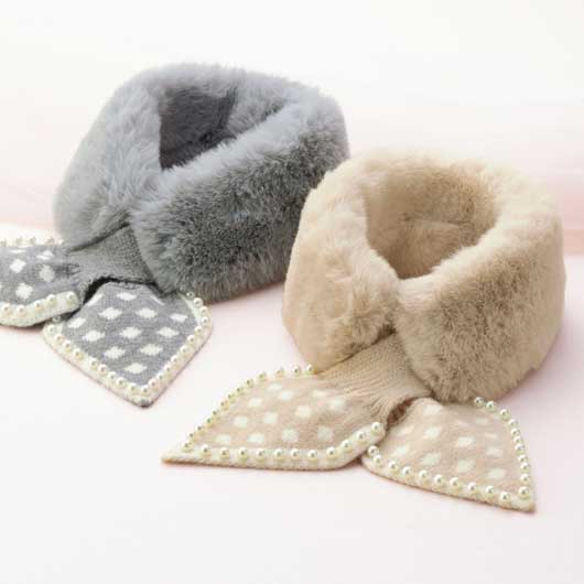 ●ビジュー付きニット&ファーティペット ×1個入り