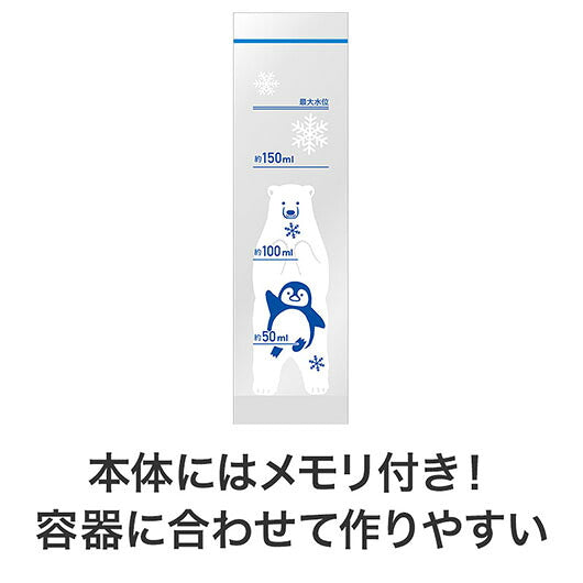 スティック状の細長い形が特徴のジッパーバッグです。 水を入れて凍らせれば、水筒に入れやすい形の氷が作れます。 お茶やスポーツドリンクで凍らせれば薄まらずに使えるため、暑い時期のドリンク作りに重宝します。 本体にはシロクマとペンギンのイラストが入り、かわいらしい見た目がポイント。 水量のメモリ付きで、用途に合わせて量を調整しやすい仕様になっています。 さらに、自宅でジュースやヨーグルトを凍らせてアイスバーを手軽に作ることもできます。 薄型パッケージのため郵送に同封しやすく、学習塾やファミリー向け企画のノベルティとしても扱いやすいアイテムです。 飲料メーカー・食品メーカー・ファミリーイベントなど、さまざまな場面で活躍します。