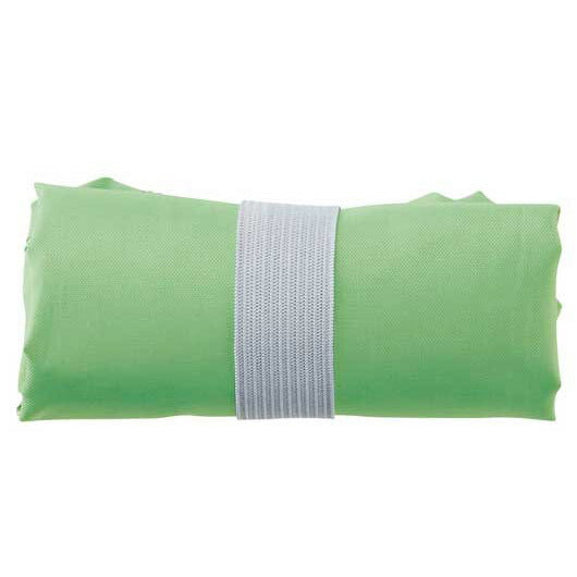 環境にやさしい再生PET生地のエコバッグ。 ゴムバンド付きなので小さくたためて収納に便利。 ちょっとしたお買い物にちょうどいいサイズ感。