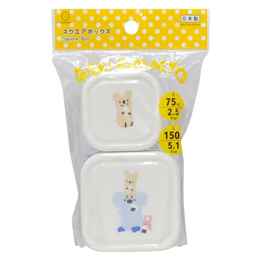 かわいいキャラクターがプリントされた スクエアボックスの大小2個セット。 サラダやフルーツが小分けできる便利なお弁当箱。