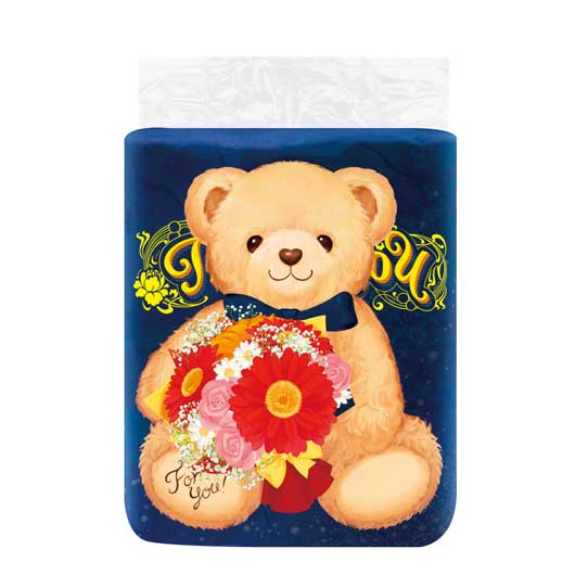 テディベアデザインの高級感のあるパッケージ。 リバーシブルデザインでイベントも華やぎます。 うれしいダブルのトイレットロール4個セット。