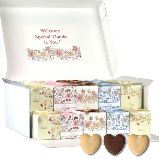 5種類の箱の中には、ハート型のクッキーを入れました。