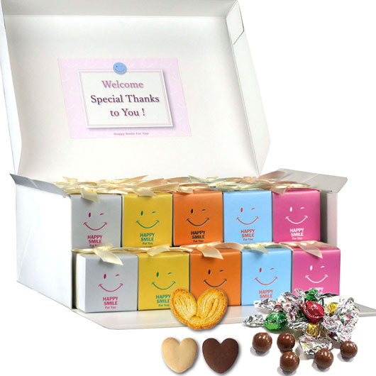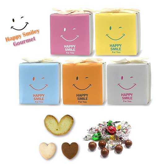 5種類のニコニコかわいいの箱の中には、ハート型のクッキーとハートパイ、