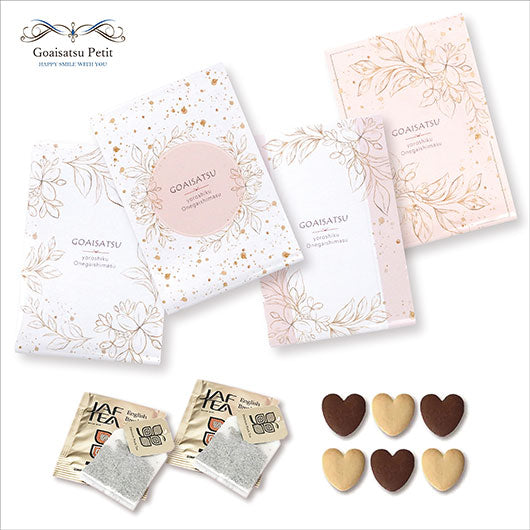 4種類の可愛いパッケージの中には、ハート型のクッキーと紅茶を入れました。ハガキサイズの大きさで、見栄えもコスパも◎