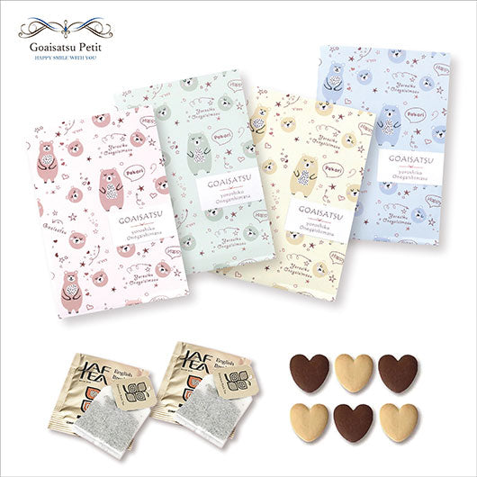 4種類の可愛いパッケージの中には、ハート型のクッキーと紅茶を入れました。ハガキサイズの大きさで、見栄えもコスパも◎