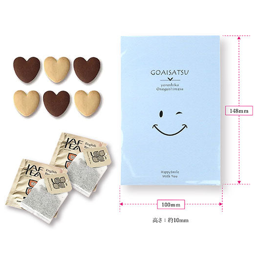 4種類の可愛いパッケージの中には、ハート型のクッキーと紅茶を入れました。ハガキサイズの大きさで、見栄えもコスパも◎